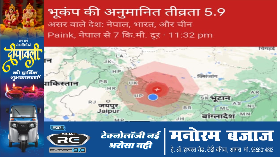 : एक महीने में दो बार आया भूकंप आगरा में भी महसूस हुए भूकंप के झटके, लोगों में दहशत