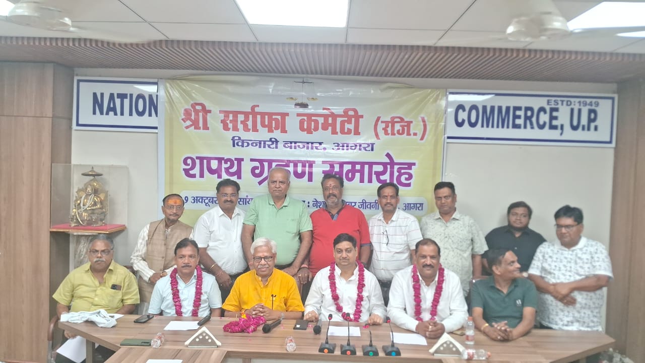 आगरा। ग्राहकों की सुरक्षा− सुविधा एवं व्यापारियों की समस्या समाधान को संकल्पित होकर श्रीसर्राफ कमेटी(रजि.) किनारी बाजार की नवीन कार्यकारिणी ने शपथ ग्रहण की। बुधवार को कमेटी द्वारा जीवनी मंडी स्थित नेशनल चैंबर के सभागार में शपथ ग्रहण समारोह आयोजित किया गया। मां लक्ष्मी के समक्ष दीप प्रज्जवलन के साथ कार्यक्रम का शुभारंभ किया गया।