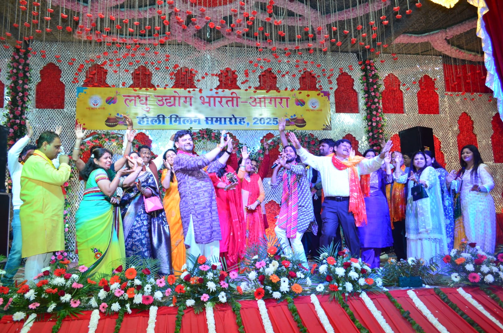 आगरा। विगत वर्षों की भांति इस वर्ष भी लघु उद्योग भारती बृज प्रांत द्वारा होली मिलन समारोह का आयोजन खंदारी स्थित साई गार्डन में आयोजित किया गया। कार्यक्रम में सभी सदस्यों ने एक दूसरे को चंदन लगाकर और गले मिलकर होली की शुभकामनाएं दीं। अपने अनुभव साझा किए और सांस्कृतिक कार्यक्रमों का ऐसे लुत्फ उठाया मानों अपनी किशोरवस्था में पहुंच गए। जहां होली के रंग और मस्ती में हर कोई डूबा नजर आया। लघु उद्योग भारती के प्रदेश उपाध्यक्ष दीपक अग्रवाल, प्रदेश सचिव मनीष अग्रवाल प्रदेश, जिलाध्यक्ष विजय गुप्ता, जिला महासचिव राजीव बंसल, कोषाध्यक्ष संजीव जैन ने मां भारती के चित्र के समक्ष दीप प्रज्वलित किया।