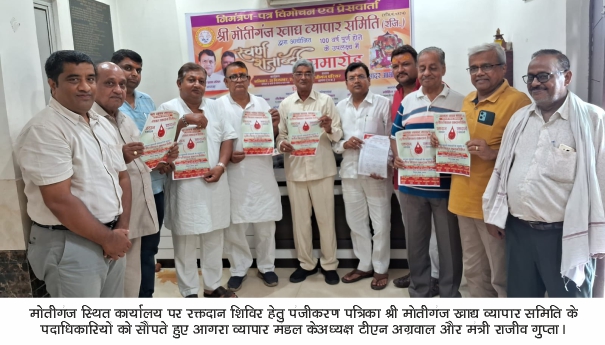 : आगरा व्यापार मंडल के तृतीय विशाल रक्तदान शिविर की तैयारियाँ जोरों पर