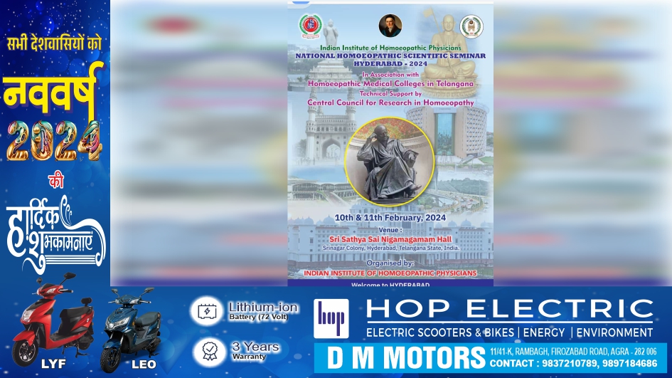 आगरा। इंडियन इंस्टीट्यूट ऑफ होमियोपैथिक फिजिशियंस की दो दिवसीय राष्ट्रीय होमियोपैथिक सेमिनार हैदराबाद, तेलंगाना में आगामी 10 व 11 फरवरी 2024 को आयोजित की जा रही है