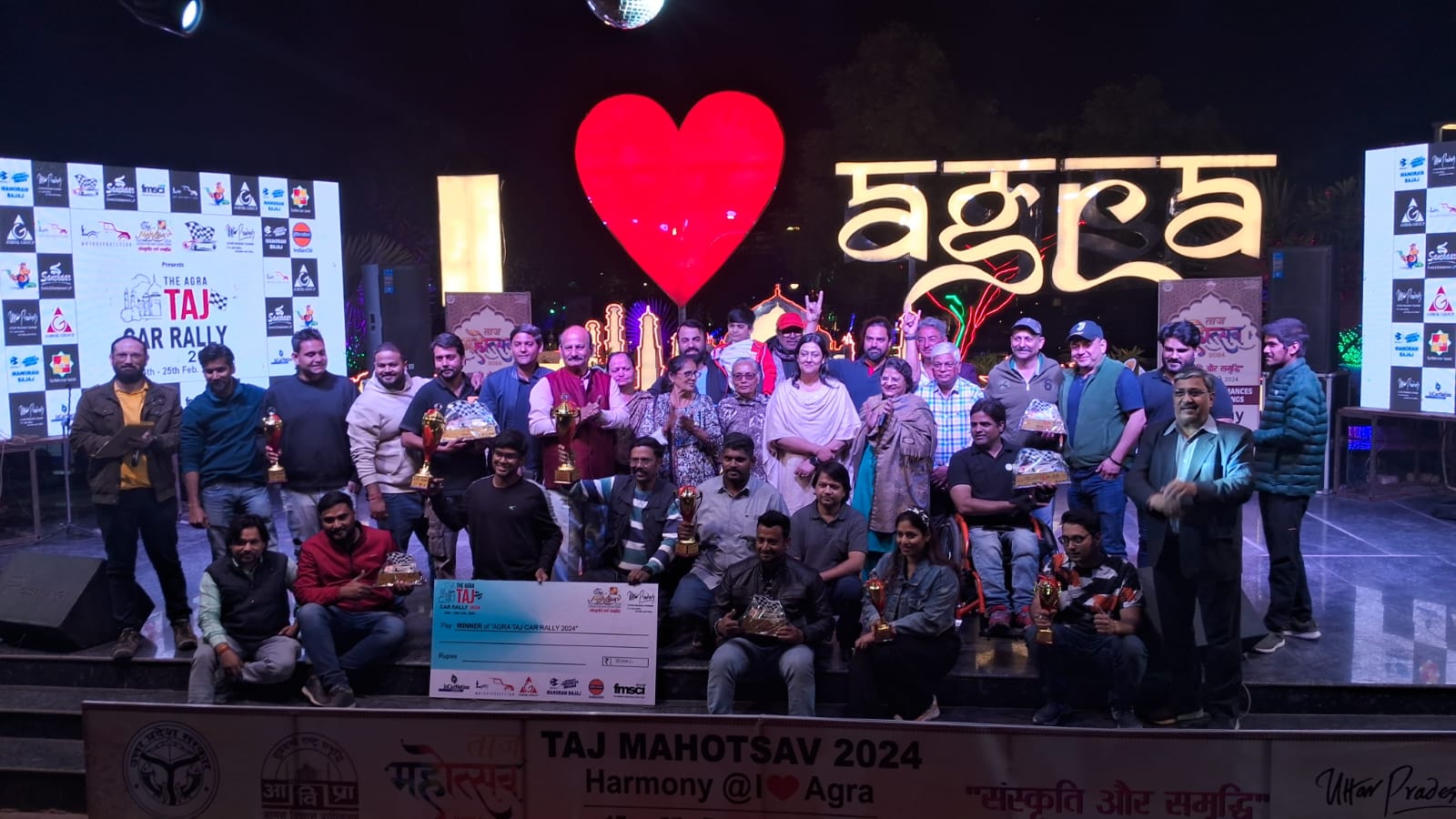 रफ्तार और जोश जुनून की प्रतियोगिता में मानकों पर खरे उतरे प्रतिभागियों को मोटर स्पोर्ट्स क्लब की कार रैली संयोजक सुदेव बरार, आगरा मोटर स्पोर्ट्स क्लब के अध्यक्ष राममोहन कपूर, तरुण रावत, डिप्टी डायरेक्टर टूरिज्म दीप्ति, क्लब के संरक्षक हर विजय सिंह वाहिया, रैली सहसंयोजक प्रवीन सिकरवार ने पुरस्कार राशि का चेक और स्मृति चिन्ह देकर सम्मानित किया। प्रतियोगिता के ओवर ऑल विनर मनीष और रुद्राक्ष को 75000 की धनराशि का चेक और स्मृति चिन्ह देकर सम्मानित किया गया। प्रतियोगिता में द्वितीय स्थान पर रहे अनिरुद्ध और प्रकाश को₹50000 की धनराशि प्रदान की गई। तेजसी और चिराग को ₹25000 पुरस्कार के रूप में दिए गए।
