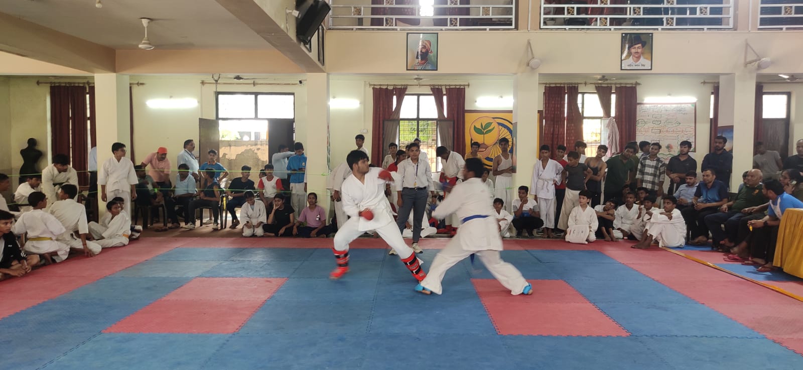 विद्यालय के प्रधानाचार्य कृष्णकांत द्विवेदी ने बताया कि मंगलवार को सुबह से ही कराटे, वुशू और ताइक्वांडो स्पर्धाओं में मुकाबले शुरू हो गए थे। कराटे में अंडर-19 बालक वर्ग में पहले दिन विभिन्न भारवर्गों में मथुरा के लकी शर्मा, रोहित शर्मा, लव, अभिषेक, निशांत, आगरा के अंश गुप्ता, गाजियाबाद के लक्ष्य मिश्र, नोएडा के आयुष, हितेश, निखिल यादव, कोसीकलां के प्रशांत, सौरभ ने स्वर्ण पदक जीते। अंडर-14 बालिका वर्ग में खुर्जा की हिमांशी, आर्या, अरीबा, निशा, अर्पिता, वृंदावन की तान्या, अनन्या, कोसीकलां की दिव्या, वंशिका और नंदिनी ने स्वर्ण पदक जीते। अंडर-19 बालिका वर्ग में दाऊदयाल स्कूल की जिज्ञासा, रितिका, मधु, कोसीकलां की संजना सहित आराधिका व दीक्षा शर्मा, अंडर-17 बालिका वर्ग में खुर्जा की दीपिका, भारती, तन्वी, कोसीकलां की हर्षिता, नोएडा की संध्या, परी, प्रतिज्ञा, वृंदावन की रितिका, वंशिका शर्मा ने स्वर्ण पदक जीते। वूशु बालक वर्ग अंडर-17 में विभिन्न भारवर्ग में अंकित शर्मा, हर्ष प्रताप, आगरा के सुनील शाक्य, संजीव, मानवेन्द्र, वेद प्रताप सिंह, मयंक भाटी, सचिन, तनिष्क, आदित्य, अभिषेक कुमार ने स्वर्ण पदक जीते। अंडर-17 बालिका वर्ग में काव्या, शशि, डिंपल राजावत, खुशी राठौर, साक्षी, ज्योति नौहवार, उन्नति, मान्या शर्मा, मोहिनी चैधरी ने स्वर्ण पदक जीते।